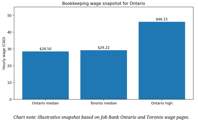 In Ontario, Job Bank lists a median wage of C$28.50/hour for bookkeepers, and the Toronto-region median is C$29.22/hour, with higher-end wage ranges extending into the mid-C$40s per hour. That means bookkeeping can be a serious, practical profession, especially for people who combine solid fundamentals with software confidence and professionalism.
